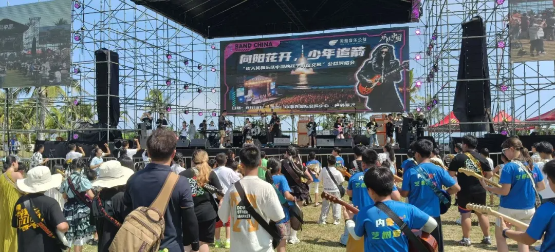 2025年8月13日,海南文昌,中国摇滚乐与少年梦想碰撞出璀璨火花!“向阳花开、少年追箭”公益演唱会作为乐队中国全国总展演的华彩终章,在万众期待中震撼上演。当“现场之王”——谢天笑的澎湃声浪在文昌的海风中相遇,当摇滚的炽热节奏与少年梦想的纯真光芒交织共鸣,一场前所未有的视听与心灵盛宴,在椰风海韵中完美落幕!